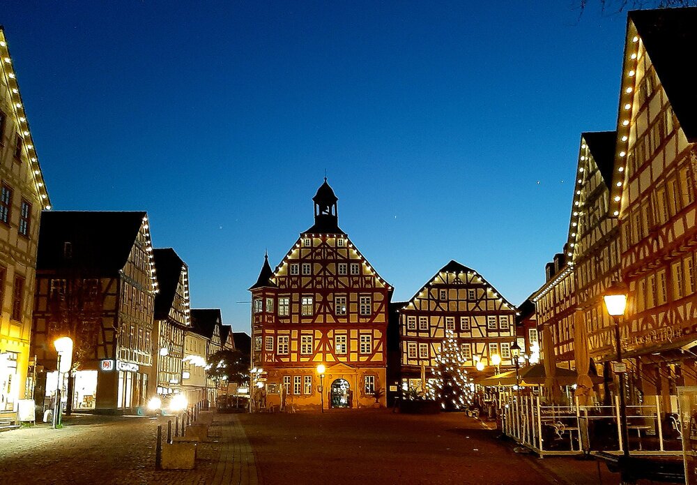 Immer wieder eine Augenweide: Grünbergs historischer Marktplatz im Lichterglanz.