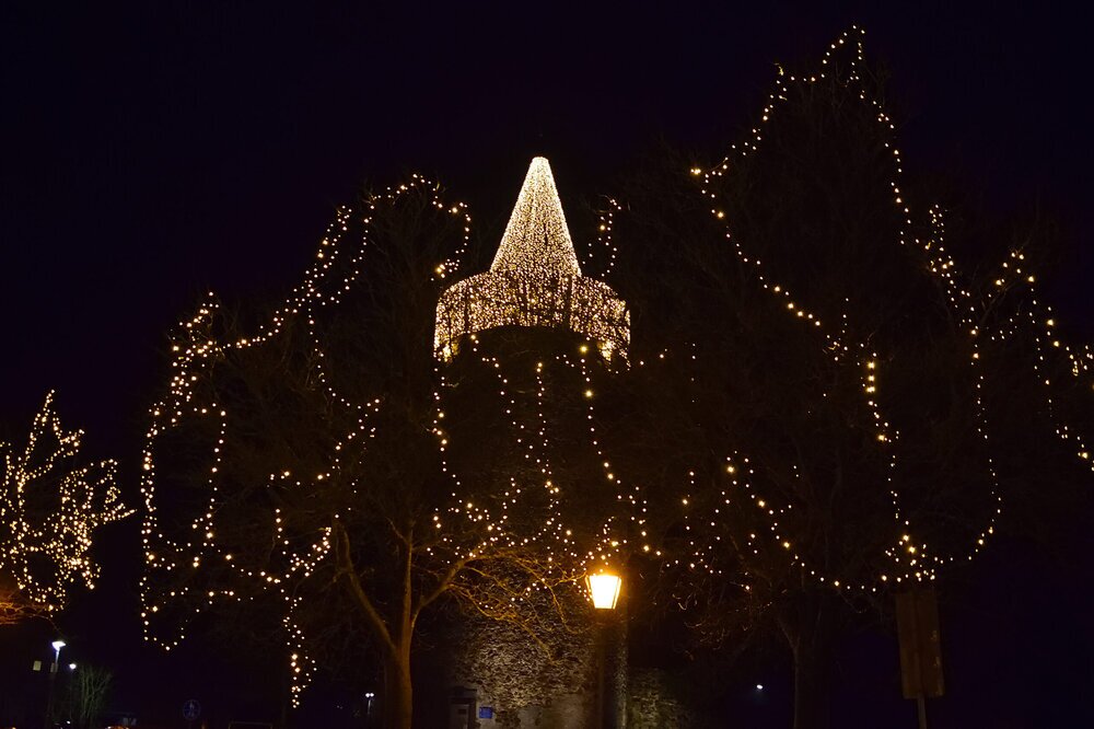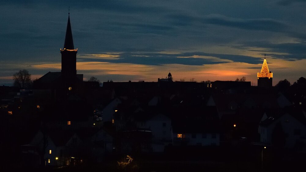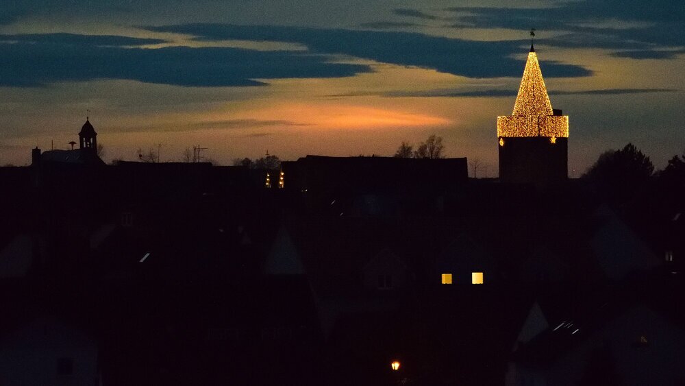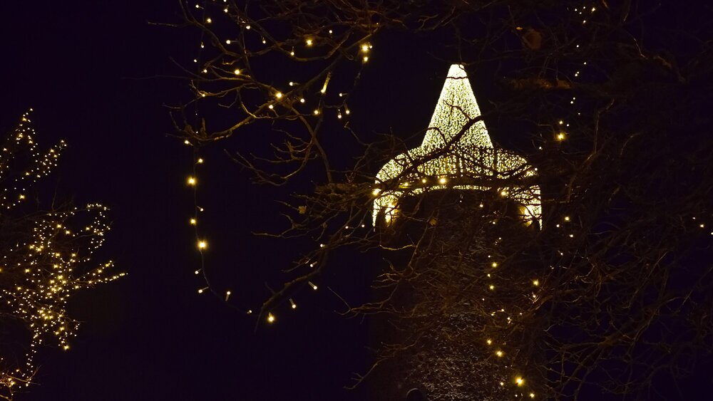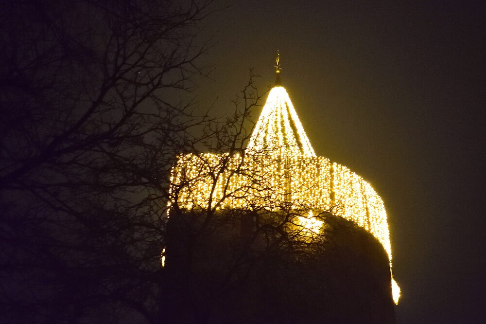 Ein wahrer Lichtblick in dunkler Jahreszeit – Grünbergs Türme festlich erleuchtet.