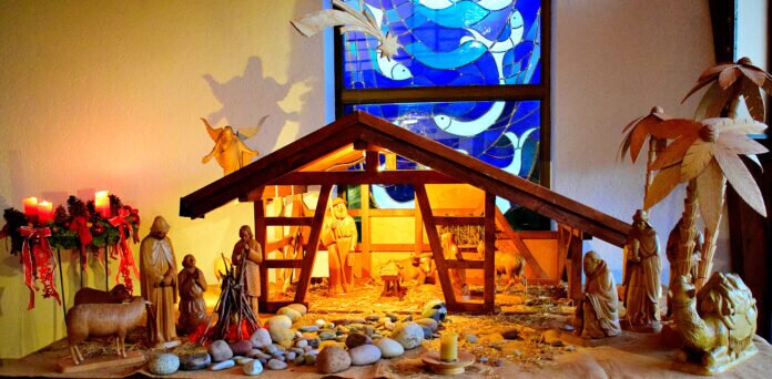 Alljährlich zum Christfest erstrahlt diese Weihnachtskrippe in der St. Pauluskirche Allendorf/Ulm (OT. Greifenstein). Zu damaliger Zeit, in den 80-er Jahren bekam ich vom Kirchenvorstand der Ev. Luth. Kirche (jetzt SELK) den Auftrag – eine Weihnachtskrippe zu werkeln. Die Krippenfiguren stammen aus dem Erzgebirge. Aufgrund der Figurengröße fertigte ich einen Zeichnungsplan im Maßstab 33 1/3 an. Danach erfolgte die Verzimmerung, die mir in jungen Jahren viel Freude und Spaß bereitete.