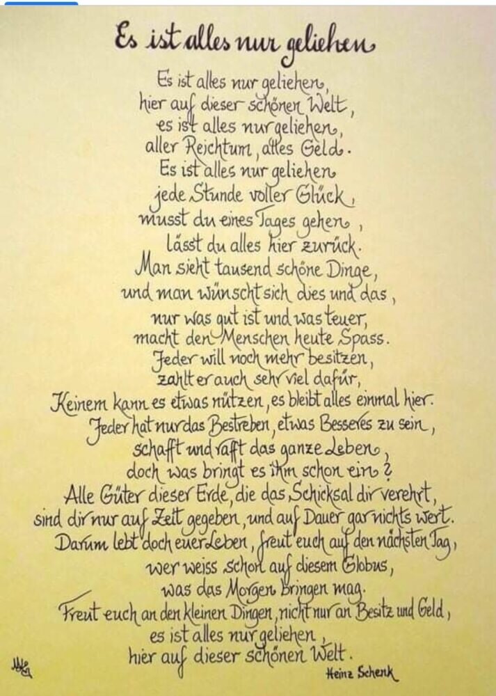 es ist alles nur geliehen hier auf dieser schönen Welt!