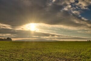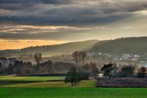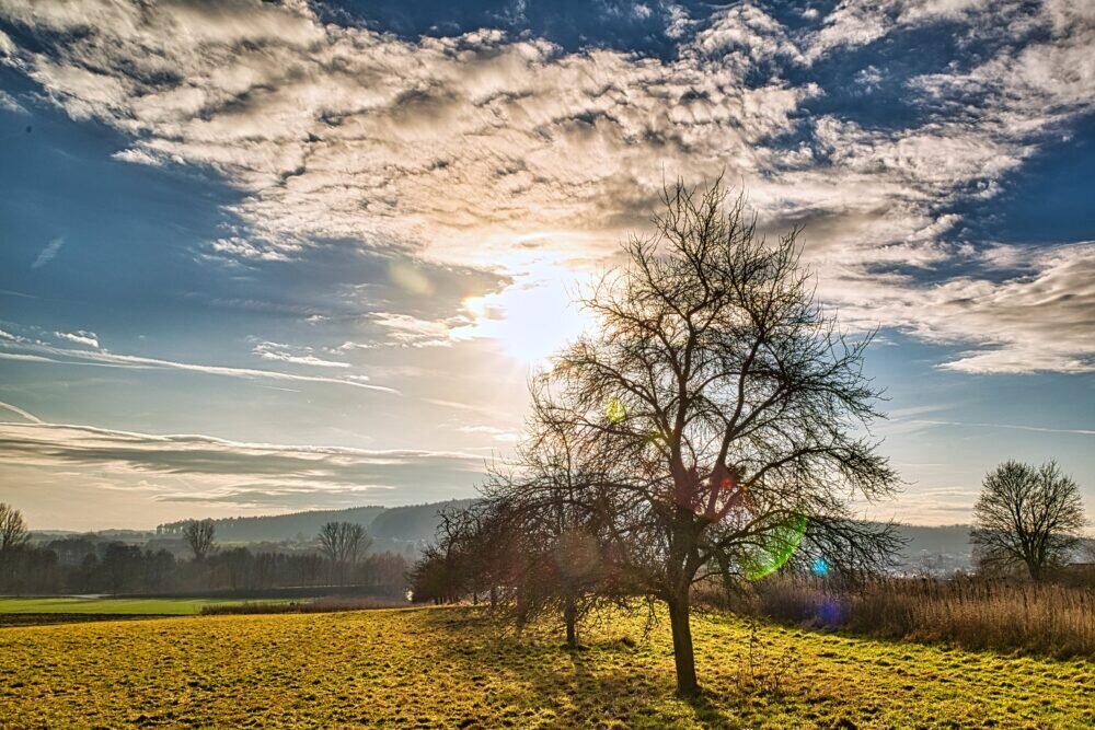 die Sonnenstrahlen wirken wie ein Scheinwerfer auf Großen-Buseck