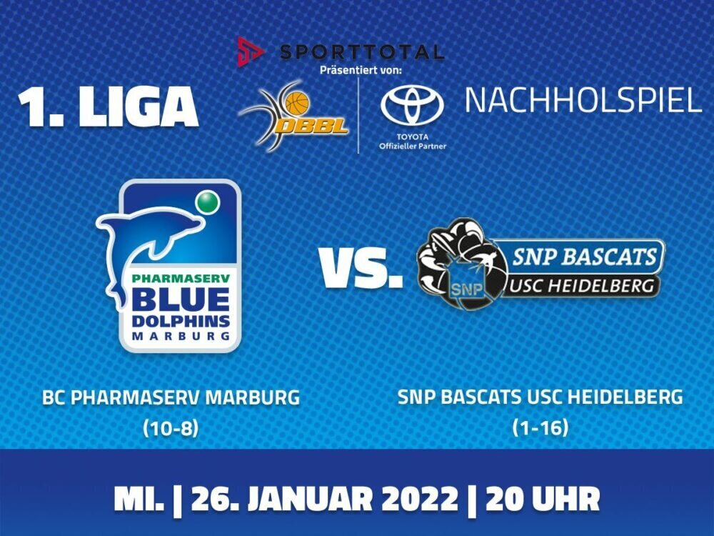 Mit 17 Tagen Verspätung empfängt am Mittwoch der BC Pharmaserv Marburg (Bilanz 10:8, Platz 7) das Tabellenschlusslicht SNP Bascats USC Heidelberg (1:16). Was das erste Marburger Heimspiel des Jahres hätte sein sollen, wird nun das dritte binnen acht Tagen. So denn nichts mehr schiefgeht.