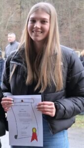 Stützpunktleiterin Nicole Rabenau hatte zum vorletzten Januar Wochenende zur Sportabzeichen Übergabe am Londorfer Sportplatz eingeladen. Mit insgesamt 108 abgelegten Prüfungen (49 Stützpunkt, 59 Schule) war auch das im Vorjahr unter Corona Bedingungen zustande gekommene Ergebnis ein lohnendes Ereignis. Die von den Eltern begleitenden Kinder ergaben einen Rahmen von gefühlt 100 Personen, die sich am Rande des Sportplatzes verteilten. Diese Menschenansammlung verursachte die staunende Frage: „Was ist denn hier los?“ Eingeladen waren die Erwerber:innen der Jugendlichen/Kinder und Erwachsenen des sommerlichen Sportabzeichen Treffs, einschließlich der letztjährigen Abgangsklasse der Rabenschule.