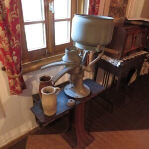 Auch in unserer Stadt standen sie in den ersten Jahrzehnten und teilweise auch später, des 20. Jahrhunderts in vielen bäuerlichen Haushalten. Sie war für die Bäuerin eine große Arbeitserleichterung beim Buttern (Herstellung von Butter). Eine Milchzentrifuge gehört daher auch zu der Ausstattung der Arbeitsküche im Heimatmuseum. Diese Milchzentrifuge trägt ein