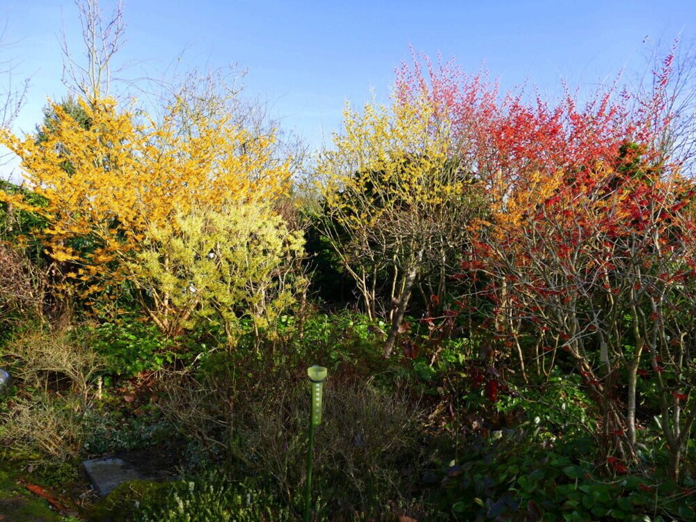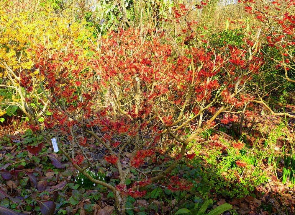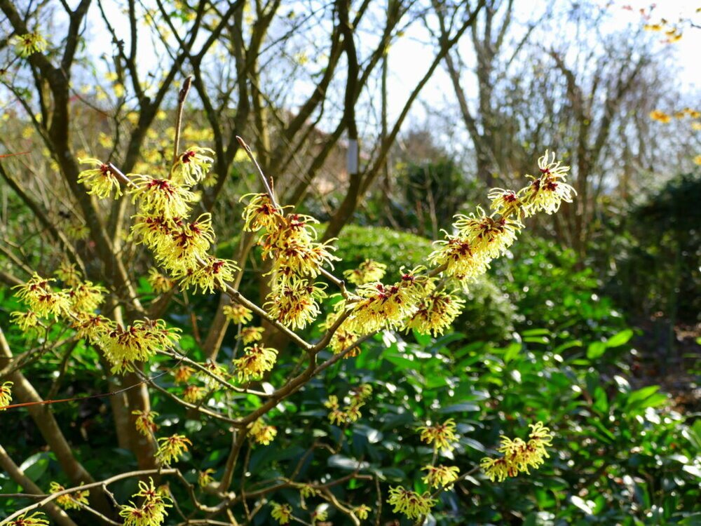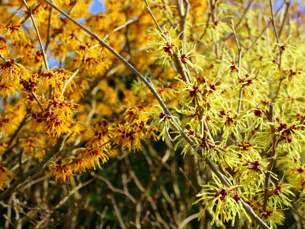 Viele verschiedene Zaubernussbäume mit einer großen Farbpalette der Blüten
