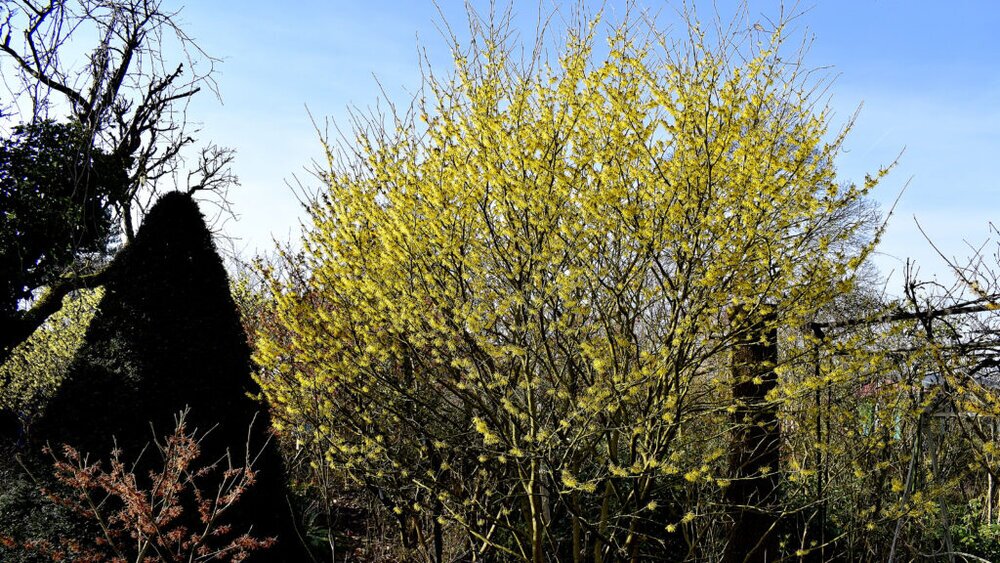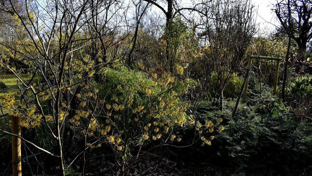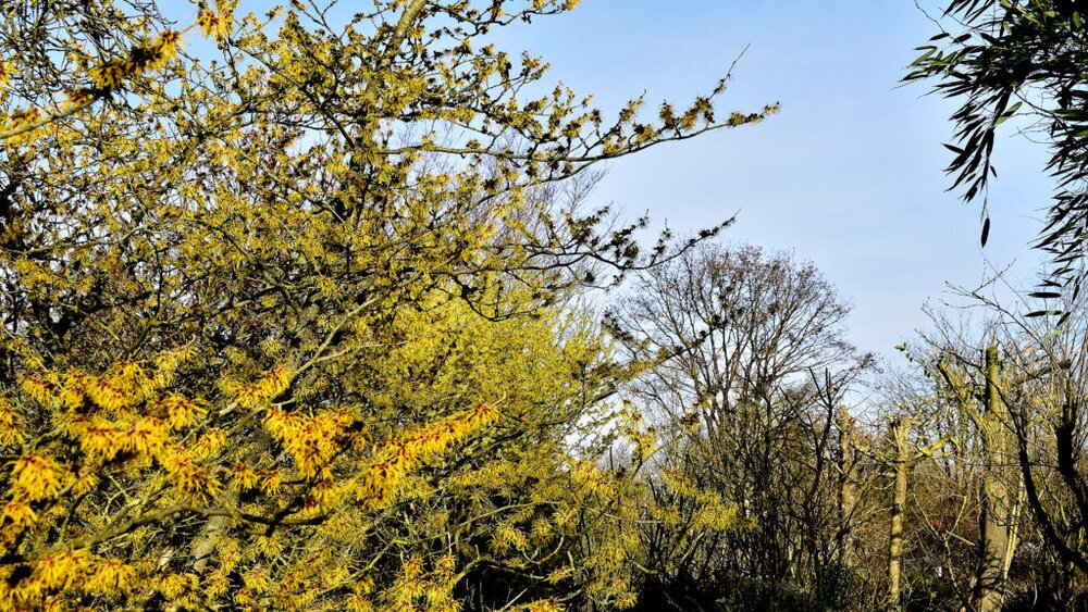 “Ein Erlebnis sollte auf uns zu kommen”! Das ließ ich zu Beginn meines Beitrags vom 8. November `21 – in unser Mitmach-Zeitung anmerken, was auch jetzt zur Zaubernuss-Blüte wieder vollends zutraf. Aus der Tageszeitung erfuhren wir, dass der Parkgarten an der Riedgasse 12 in Trais-Horloff, an zwei Wochenenden, im Februar für Besucher öffnet. Das hatten wir uns als Gartenfreunde schon im vergangenen Jahr vorgemerkt, als Besitzer – Dr. Jobst Biester die Besucher darauf hinwies, dass sein Parkgarten im Winter, wenn die Zaubernuss-Sträucher ihre volle Blütenpracht zeigen, wieder öffnet.