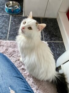 Als winziges Kitten saß Luna im Motorraum eines PKW. Als man sie entdeckte, war sie verletzt und hatte eine große, tiefe Wunde am Rücken sowie Verbrennungen. Sie war voll Öl , die weiße Farbe war nicht zu erkennen. Unsere spanischen Tierschutzfreunde haben sie nicht aufgegeben. Sie kämpften um das kleine Leben des ca. fünf Wochen alten Katzenkindes. Und woran keiner glaube, die winzige Katze war eine Kämpferin! Sie hat es geschafft und sich zu einer Schönheit entwickelt. Unser Patenverein Arca de Noé in Andalusien hat uns Luna anvertraut, um ein schönes und behütetes Zuhause für sie zu finden. Die kleine Lady ist vier Monate alt, geimpft und gechipt. Sie ist eine reizende Schmusekatze, die alle Menschen liebt, voller Vertrauen ist , sich mit Artgenossen und einem lieben Hund versteht.