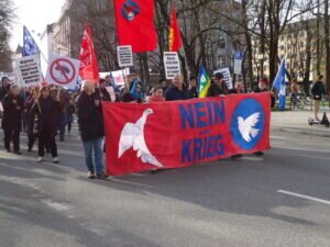 Fast alle Gremien und Gruppen der deutschen traditionellen Friedensbewegung (DFG-VK, Netzwerk Friedenskooperative, Friedensratschlag, Pax Christi, IPPNW, IALANA,VVN-BdA und andere) haben sich energisch gegen die weitere Zuspitzung der jahrelangen Auseinandersetzungen in und um die Ukraine durch den Einmarsch des Russischen Militärs in die Ukraine ausgesprochen und zu Demonstrationen und Kundgebungen aufgerufen.