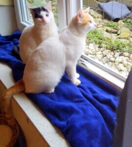 Die beiden Kater haben “die Ruhe weg! Sie lieben kuschelige Körbchen, streichelnde Hände und ein Futternäpchen mit “Gourmet”futter. Ihre “stramme” Figur zeigt, dass sie keine Kostverächter sind.