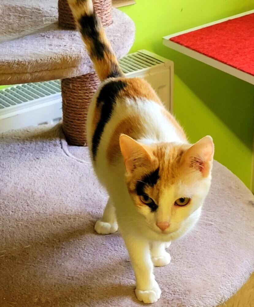 Die hübsche Mieze ist im Sommer letzten Jahres geboren! Sie ist ein fröhlicher und ausgelassener Tausendsassa! Sie bringt mit ihren Kapriolen das ganze Katzenzimmer in Stimmung! Sie kann so ausgelassen spielen, dass man meint, sie sei ” aufgezogen”! Eine richtige Frohnatur.