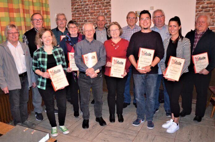 Von 28 zu Ehrenden Mitglieder waren zwölf anwesend. Ihnen wurde vom Vorsitzenden Seidler zusammen mit Vorstandsmitgliedern gedankt, gratuliert sowie Urkunden, Anstecknadeln und Geschenke überreicht. Nicht anwesende zu Ehrende werden später ausgezeichnet.