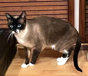 Siamkatzen mit vier weißen Pfötchen nennt man Snowshoe. Nina ist eine sehr schöne Katzen mit ihren strahlend blauen Augen im “schokoladenbraunen” Gesichtchen. Sie ist ca. zwei Jahre alt, kastriert, gechipt, geimpft und hat ein negatives Blutbild.