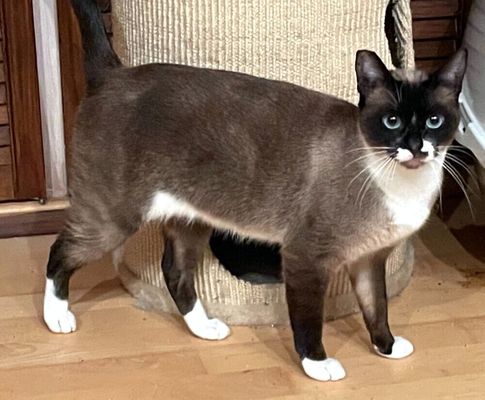 Siamkatzen mit vier weißen Pfötchen nennt man Snowshoe. Nina ist eine sehr schöne Katzen mit ihren strahlend blauen Augen im “schokoladenbraunen” Gesichtchen. Sie ist ca. zwei Jahre alt, kastriert, gechipt, geimpft und hat ein negatives Blutbild.