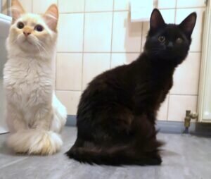Harpo und Bruder Poli sind im Februar 2021 geboren. Welche Rasse “in ihnen steckt”, wissen wir leider nicht. Sie wurden herumirrend auf der Strasse gefunden. Ihr längeres Fell ist wunderschön, aber nicht pflegebedürftig. Sie sind kastriert, geimpft und gechipt. Sie eignen sich nicht als Freigängerkatzen. Wir wissen nicht warum, aber vor lebhaften Kindern haben sie Angst. Das linke Äuglein von dem schwarzen Kater ist momentan noch trüb. Er hat eine Verletzung, die behandelt wird, sodass das Auge bald wieder klar ist.