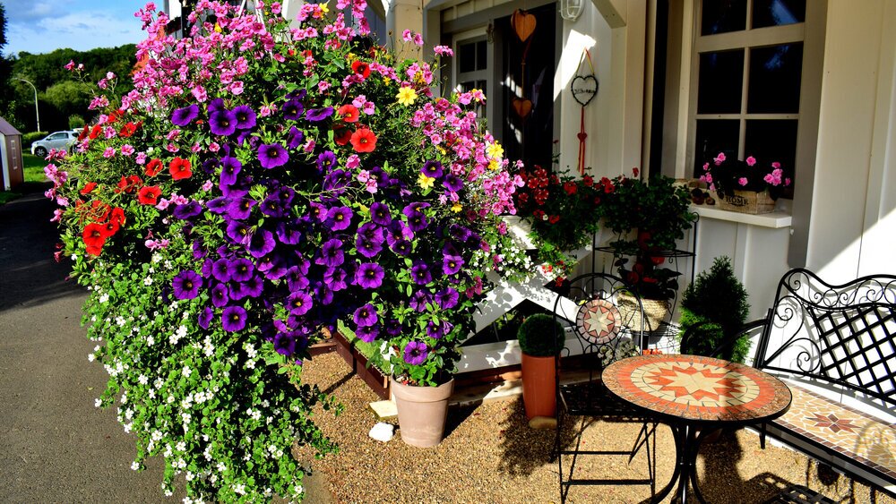 … > das zeigen beide Aufnahmen von unserer Terrasse und Sommerecke.
