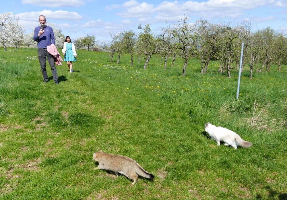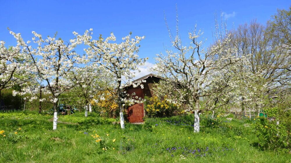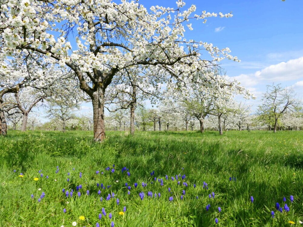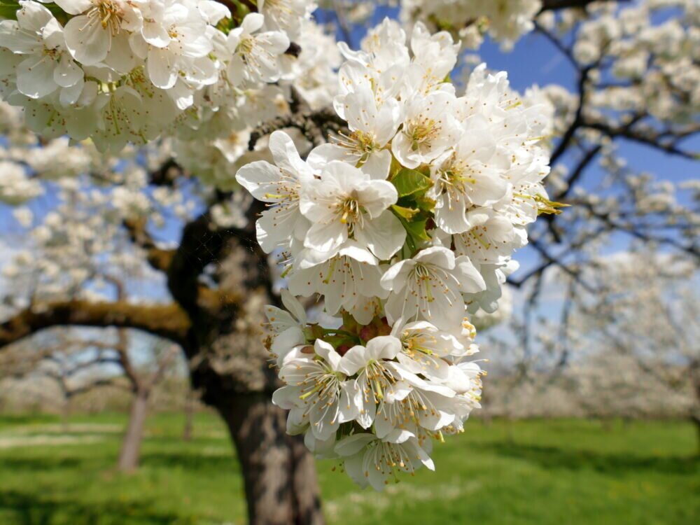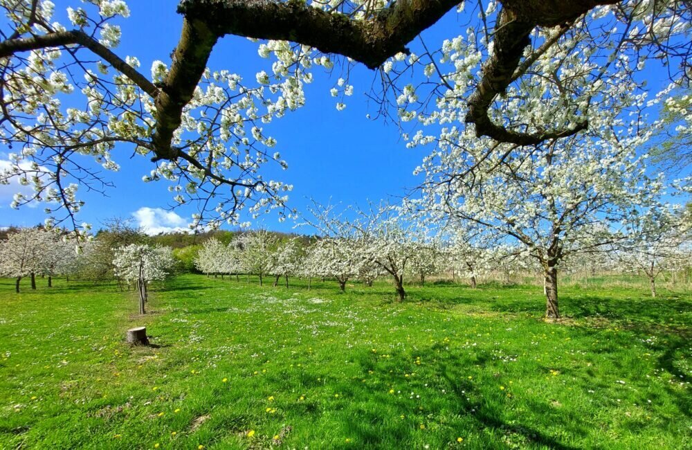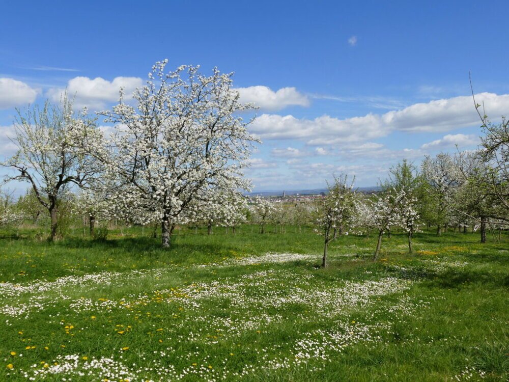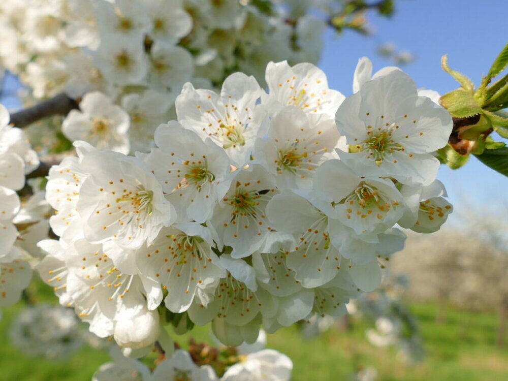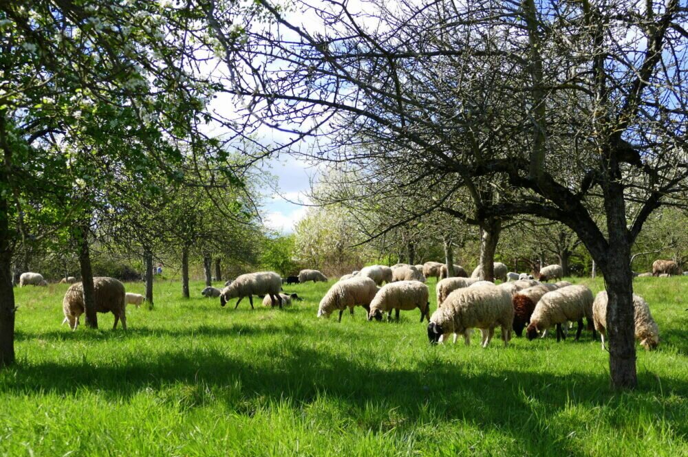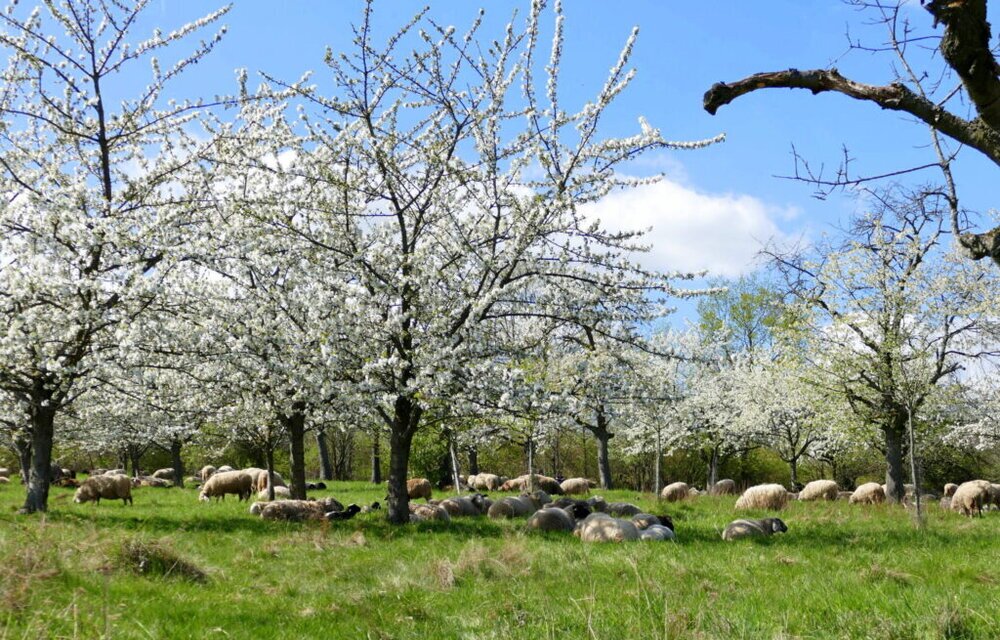 Auch in diesem Jahr stehen die Kirschbäume in Ockstadt in der Wetterau wieder in voller Blüte. Die Wiesen darunter sind mit Gänseblümchen und Löwenzahn übersäät. Der Himmel war blau mit schönen weißen Wolkengebilden. Perfektes Fotowetter. Eine große Schafherde konnte sich an dem grünen Gras satt fressen. Viele junge Schafe waren auch dazwischen und nicht zu überhören.