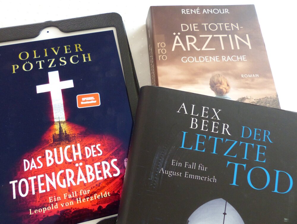 „Der letzte Tod“ von Alex Beer. – Wien 1922 und der 5. Teil der sehr guten historischen Krimi-Reihe um Inspektor August Emmerich und seinen jungen Kollegen Ferdinand Winter. Während die Inflation ihrem Höhepunkt entgegen geht, der Unterschied zwischen Reich und Arm immer größer wird, jagen die beiden Polizisten einen perfiden Serienmörder. Der steckt seine Opfer in enge Behältnisse und lässt sie ein grausames Ende finden. Zudem taucht ein alter Feind aus Emmerichs Vergangenheit auf, Xaver Koch, der nach einem missglückten Mordanschlag auf den Ermittler nach Budapest flieht. Dort findet er zwar nicht den Geflüchteten, jedoch Hinweise zum länderübergreifend mordenden Serienkiller. Sozusagen der Beginn von Interpol.