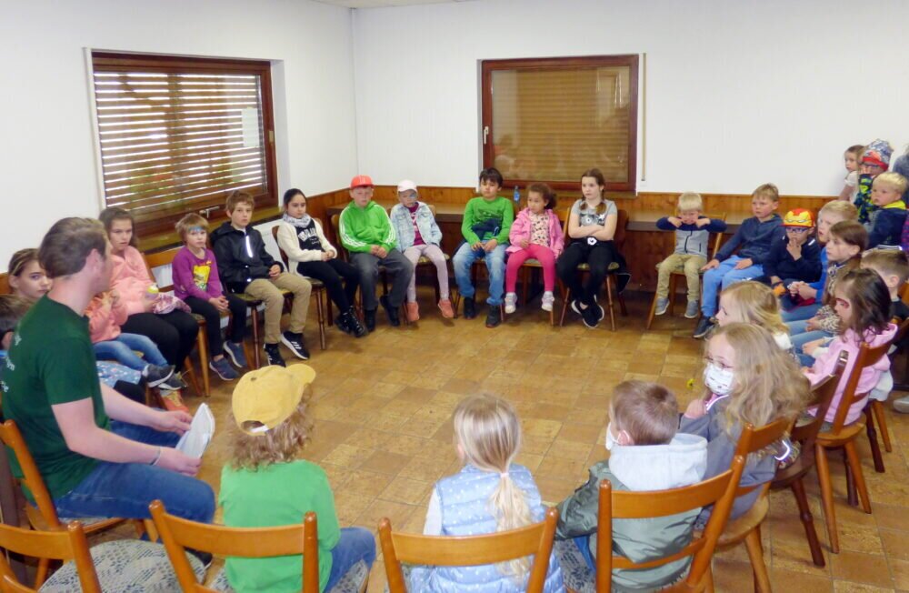 Bei sonnigem Frühlingswetter herrschte bereits an Karfreitag reges Treiben im gesamten Geflügelpark-Pohlheimer-Wald. Doch damit der Osterhase bei seinem „vorzeitigen“ Besuch die bunten Körbchen im weitläufigen Park verstecken konnte, wurden alle Kinder ins Vereinsheim gerufen. In einem großen „eiförmigen“ Stuhlkreis lauschten die Kids der „Ostergeschichte“, dem Gedenken an die Kreuzigung und Auferstehung von Jesus, die Hannes Grutzeck sehr kindgerecht vortrug.