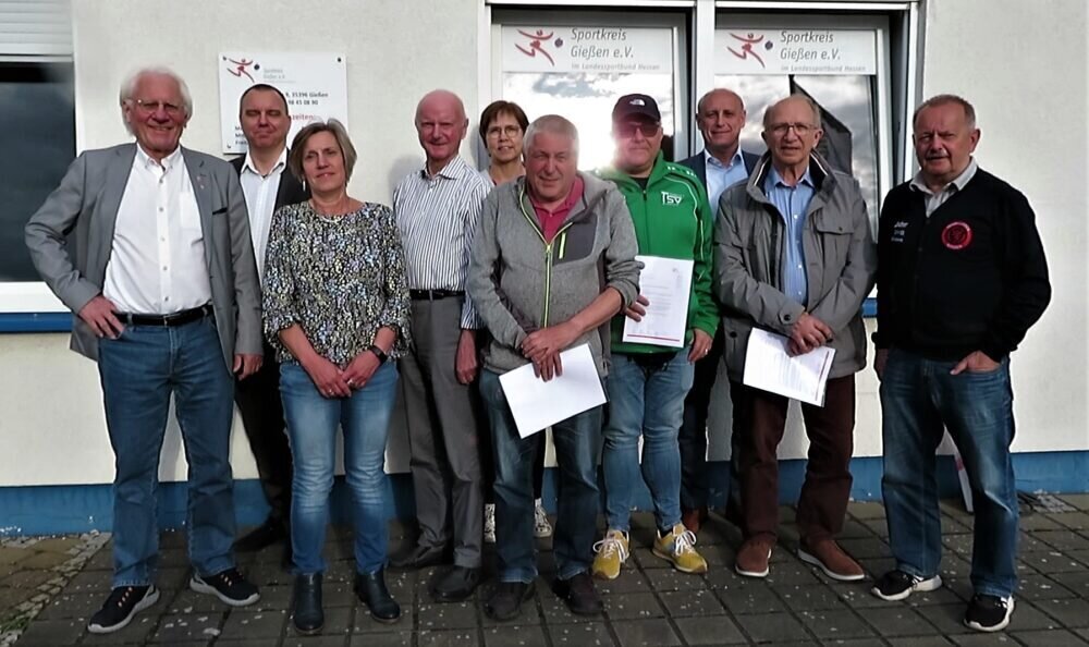 Einige Vereine aus dem Sportkreis konnten für Maßnahmen auf ihren Sportgeländen wieder Zuschüsse des LSBH entgegen nehmen. In der Geschäftsstelle des Sportkreises Gießen übergab der Sportkreisvorsitzende Prof. Dr. Heinz Zielinski Bewilligungsbescheide von insgesamt 34.221,- Euro an 9 Vereine. Blau Gold Gießen, Rot-Weiß-Club Gießen, SKV Obbornhofen, TV Dornholzhausen, Kegel-Spielgemeinschaft Mittelhessen, TSF Heuchelheim, TSV Lang-Göns, SV Saasen, RuF Grünberg.