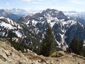 Von der Bergstation machten wir uns auf den Weg in in die Richtung Brandnerschrofen – den Gipfel ganz zu erreichen, hatten wir nicht vor. Es hatte stellenweise noch Schneefelder und besonders auf dem vielbegangenen Pfad lag eine festgetretene Altschnee- und Eisschicht, die eine gewisse Rutschgefahr bedeutete. So gings nur bis zur “Brandnerschulter”, wo ein paar Sitzbänke und eine schmucke Bergwiese zum Verweilen einluden. Hier applizierte mein Mitwanderer eine App auf seinem Smartphone, die es ermöglichte, alle sichtbaren Berggipfel namentlich zu identifizieren. Viele kannte ich ja, aber bei einigen lag ich mein bisheriges Leben lang falsch. Siehe hierzu auch die Bildunterschriften.