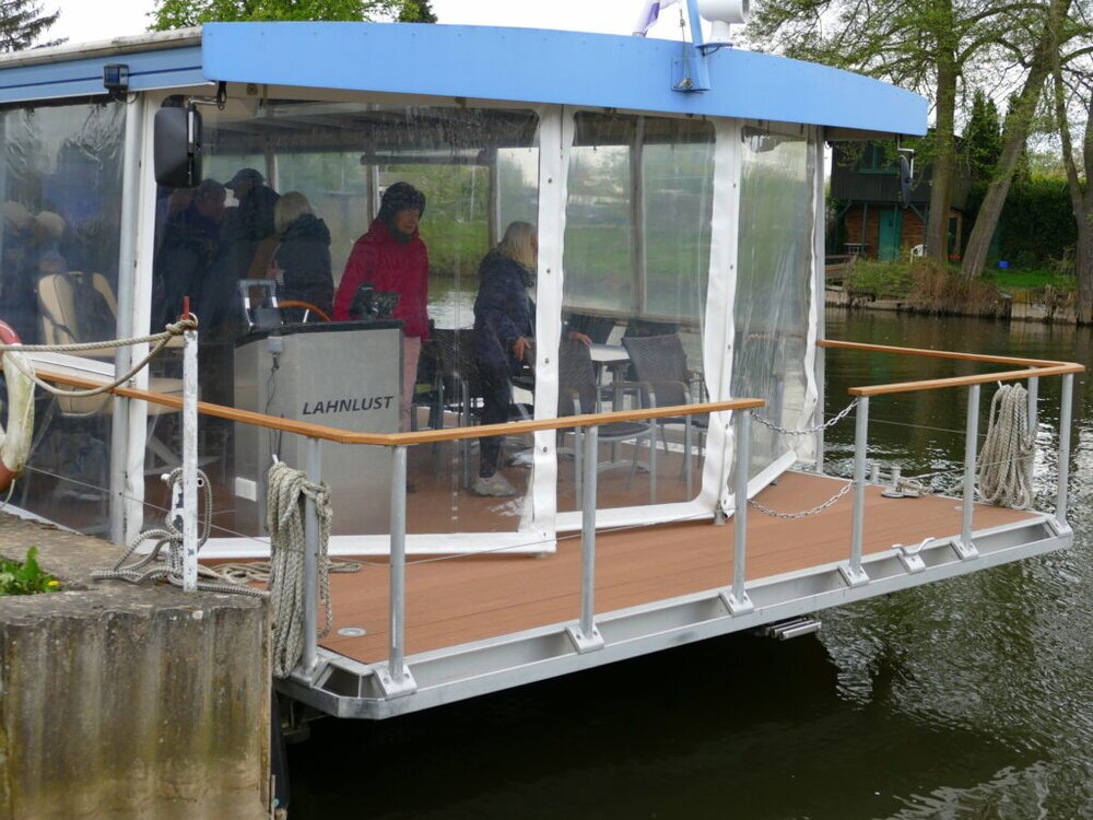 Heute konnte man im Marine Verein an der Lahn beim traditionellen Antuckern in die neue Saison, kostenlos an einer Kurzfahrt teilnehmen. Um 14.00 Uhr hieß es Leinen Los. Die “Lahnlust” hatte einige Gäste eingeladen. Der “Schlammbeißer” liegt leider noch auf dem Trockenem. Die Sonne ließ sich nicht sehen aber es regnete zum Glück nicht. Zunächst sind wir in Richtung Badenburg gefahren. Kurz vorher hat der Kapitän umgedreht und es ging weiter in Richtung Bootshaus. Dann fuhr er um die Insel beim Bootshaus und wir fuhren wieder zurück zum Marine Verein. Es ist eine sehr schöne Tour und man konnte wieder mal die Lahn aus einer anderen Perpektive genießen.