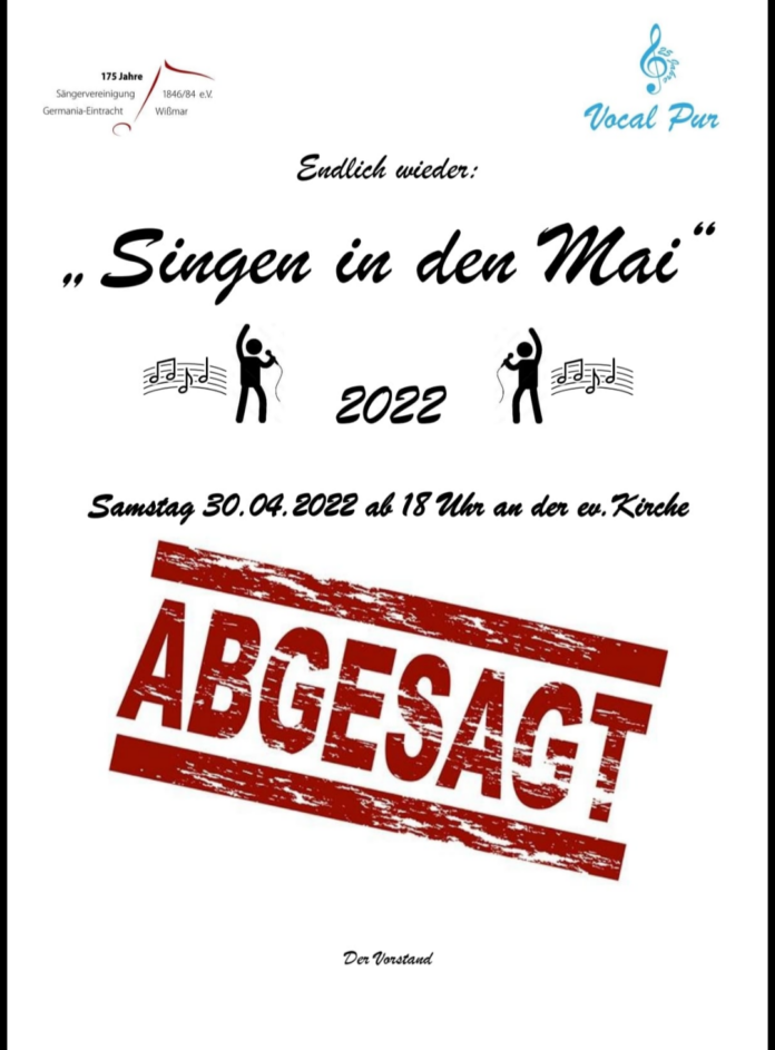 ABGESAGT: Vocal Pur – Singen in den Mai Von Aliye Inceöz - 29. April 2022 213 Das traditionelle Singen in den Mai muss leider aufgrund einiger Coronafälle kurzfristig ausfallen.