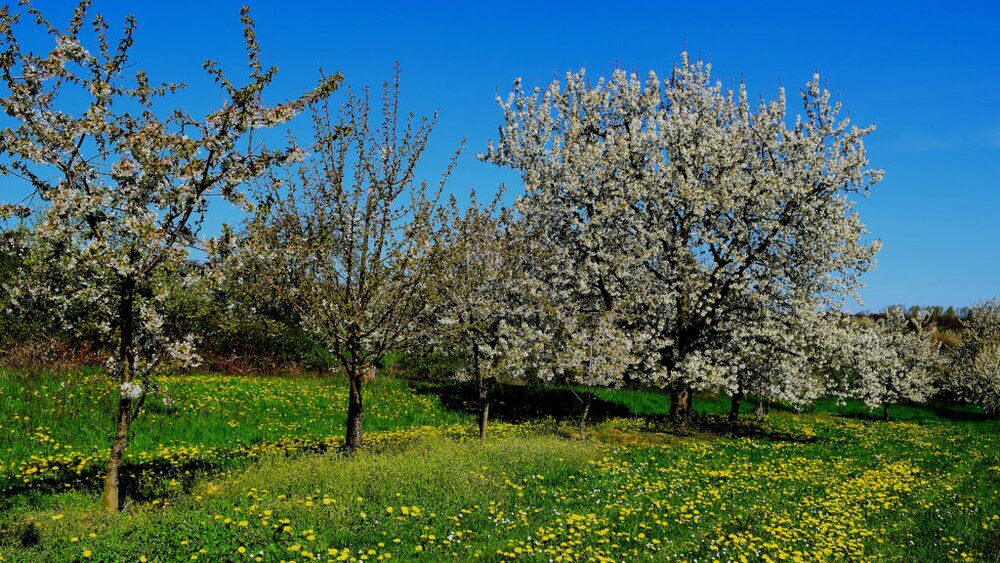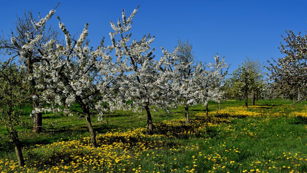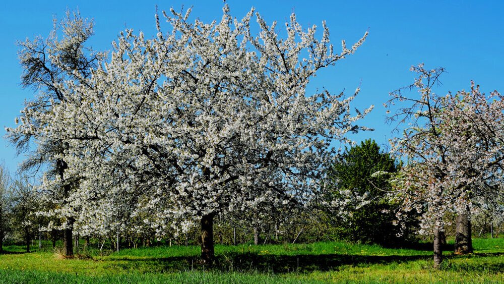 Bis in die 60er Jahre hinein wurden vor allem hochstämmige Kirschbäume gepflanzt. Diese bis zu zehn Meter hohen Bäume waren zwar schwer zu ernten, aber man konnte mit Fuhrwerken unter den Bäumen hindurch fahren und so jeden Quadratmeter Erde bewirtschaften.