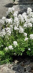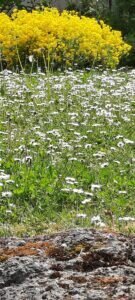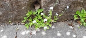 Auf dem Gehweg wächst unbeirrt ein Pflänzchen, ein Maiglöckchen wo ich nicht weiß wo es auf einmal her kommt und die Gänseblümchen auf unsere Wiese vor dem Haus die dem Rasenmäher trotzen u.ratz fatz wieder erblühen.
