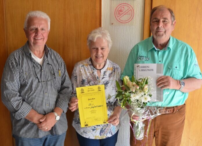 Von den zu ehrenden Mitgliedern war nur Karl-Ludwig Jung anwesend, dem die Vorsitzende Seidler zusammen mit Rechner Pötzl für seine 50-jährige Treue zum Ortsverband mit einer Ehrenurkunde und Präsent herzlich gratulierte.