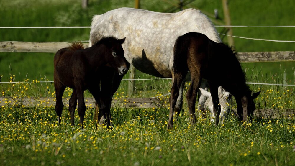 Über den Hetzberg, wo Tannenmeise und Girlitz flogen, ging es vorbei an Obstbäumen und Pferdekoppeln mit ganz jungen Fohlen, so allmählich zum Ausgangspunkt.