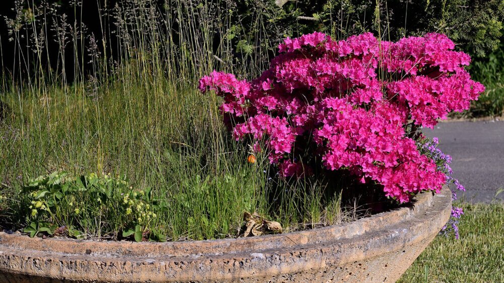 Besonders schöne Pflanzschale – sollte eine >Chinesische Kräuselmyrte< sein.