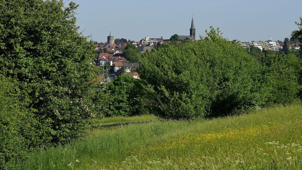 Schöner Blick auf die Altstadt mit seinem Wahrzeichen, Diebsturm und Stadtkirche.