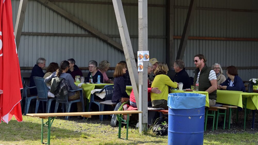 Nach über 2-stündiger Wanderung kehrten die Teilnehmer an der Reithalle ein, wo die Schlussbesprechung mit Frühstück stattfand.  Das Bewirtungsteam des Reit-und Fahrvereins Grünberg hatte aus Anlass des Reit-Turniers ein Buffett vorbereitet, das gerne in Anspruch genommen wurde.