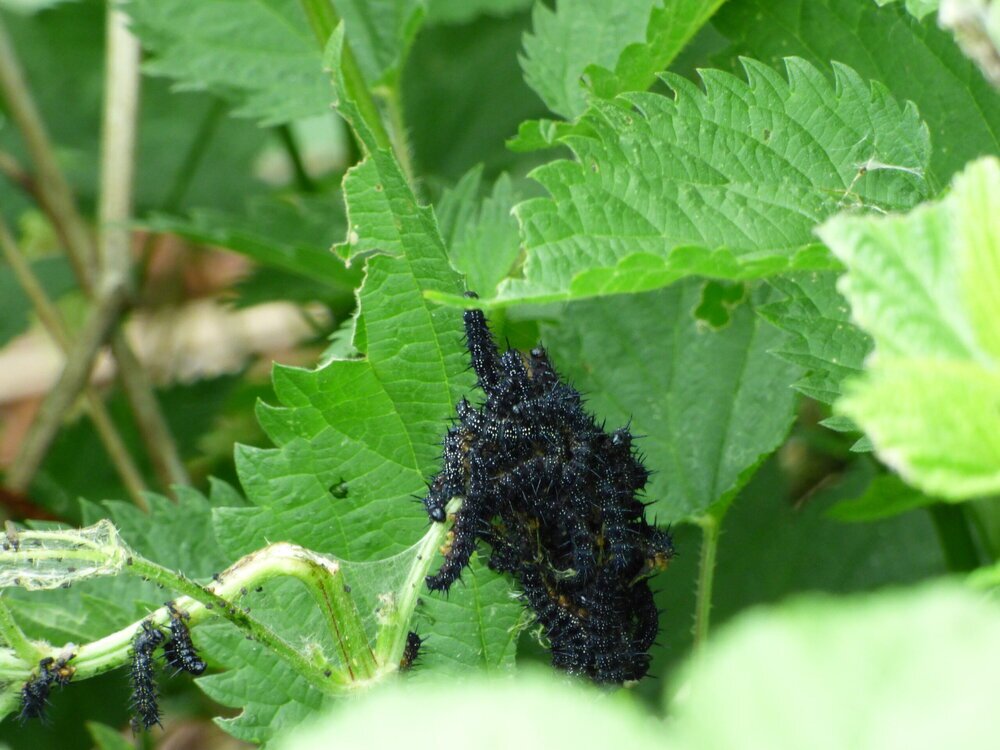 Jetzt ist die Zeit der Schmetterlingsraupen. Besonders viele Raupen findet man gerade an den Brennnesseln. Die Schwarzen Raupen, mit weißen Punkten und kleinen Stacheln, sind die Raupen des Tagpfauenauges. Es wird nicht mehr lange dauern, dann werden sie sich zum Schmetterling verwandeln. Genauso ist es bei den Raupen am Pfaffenhütchen. Die Gespinste sind bereits verlassen, die Raupen groß genug für die Verwandlung. Am Rande der Brombeerhecke habe ich die ersten Ästlinge der Bachstelze sitzen sehen. Auch die kleinen Feldhasen sitzen geduckt im Gras, zwischen den Sträuchern. Bitte haltet eure Hunde kurz und fahrt langsam über den Parkplatz beim Roller. Nicht das die Babys plötzlich keine Mutter mehr haben, oder den Babys selbst etwas passiert. Die erste Mähaktion ist gestartet. Nächste Woche wird der zweite Teil der Wiese gemäht. Natürlich nicht so kurz, damit die Hasen sich weiter verstecken können. Viel Spaß beim Beobachten.