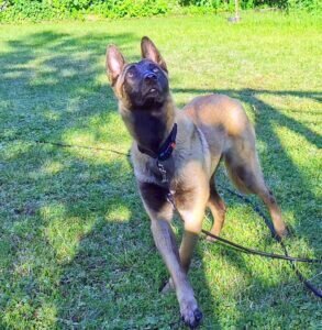Der Belgische Schäferhund Keegan ist im Mai 2021 geboren. Er ist ein neugieriger, aufmerksamer Hund, der schnell lernt.