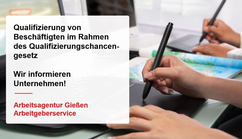 Der Arbeitgeberservice der Arbeitsagentur Gießen bietet interessierten Unternehmen Information und Beratung zu Fördermöglichkeiten im Rahmen des Qualifizierungschancengesetz.