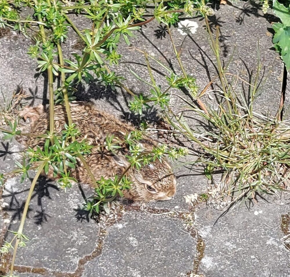 Die Frühlingsblumen sind verwelkt, jetzt kommen die typischen Sommerwiesenblumen und die Tierbabys. Wildtiere bitte nicht anfassen oder füttern! Die Hasenmutter kommt genau wie die Vogeleltern zum füttern. Feldhasenbabys flüchten erst in der letzten Minute. Bitte haltet Abstand. Sollte die Hasenmutter nicht zum Säugen kommen, bekomme ich das mit und werde den Babys helfen. Versprochen! Letzte Woche hat Wilde Ecke hat ihren Sommerschnitt erhalten. Die Samen der Frühlingsblumen sind hoffentlich in der Wiese gelandet. Der Regen dürfte jetzt für das Keimen der Samen sorgen. Die Königskerze bildet langsam ihren Blütenstamm. Sie wird im Spätsommer für Nektar sorgen. Kleine Blütenköpfchen sind in den Ringelblumen zu erkennen. Es wird nicht mehr lange dauern, bis sie blühen. Auch das Ackerstiefmütterchen hat erste Blüten, genau wie die Gänsedistel. Gänsedistel scheint den kleinen Feldhasen zu schmecken. Oft kann man die angefressenen Pflanzen und die Hasenköttel sehen. Mit viel Glück verstecken sich die Hasenbabys an einer sichtbaren Stelle. Bitte fahrt vorsichtig auf dem Rollerparkplatz, denn hier hoppeln die Babys gerne am Randstein. Die Lichtnelken und Violen bereiten sich auf eine zweite Blüte vor, während die Taubnesseln bereits mitten in der zweiten Blüte stehen. Das Bild, der wilden Ecke, hat sich gewandelt. Die Malve, Kamille, Färberhundskamille und Flockenblume, sowie einige Kleearten blühen bereits, und die Gräser sind wieder am Wachsen. Wer genau hinschaut, kann erste kleine Spinnenkinderstuben finden. Die Schmetterlingsraupen haben sich satt gefressen und stehen kurz vor der Verwandlung zum Falter. Die jungen Bachstelzen und Dorngrasmücken hüpfen in den Ästen der Eiche und in der Brombeerhecke umher. Alle Blüten werden von zahlreichen Insekten besucht. Neben der Sommersonne braucht es zum Wachsen auch Regen. Hoffen wir auf leichte Sommerregen, damit die Blümchen wachsen können.