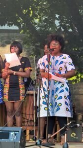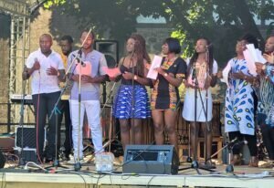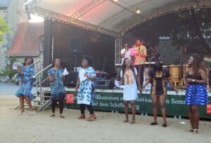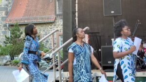 Gospelgesang wechselte sich ab mit rhytmischen Klängen aus verschiedenen Kulturen. Man fühlte sich Afrika nach bei den fröhlichen Klängen und Bewegungen der Sängerinnen und Sänger. Die Stimmung auf der Bühne nahm das Publikum mit.