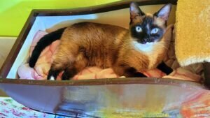 Siamkätzchen Tofu ist im Dezember letzten Jahres geboren. Sie ist herzallerliebst! Freundlich mit Artgenossen, verschmust und neugierig! Sie ist gerne auf dem Arm und hält auch gerne ein “Schwätzchen”! Wir möchten Sie als Gesellschaftskatze in reine Wohnungshaltung abgeben. Nette Kinder wären als Spielgefährten toll!
