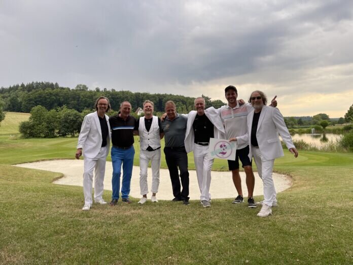 Fußballweltmeister Uwe Bein, Skiweltcubsieger Jochen Behle und HSG Wetzlar Trainerlegende Ben Mascheck waren gerne bereit mit den Musikern ein Bild auf dem Green vor Loch 9 zu machen. Nächstes Konzert der Oldschooler ist am Dienstag, den 4. Juli beim Oldieclub im Raabennest in der Wetterau und am Donnerstag, den 14 Juli auf dem Marktplatz in Gladenbach.