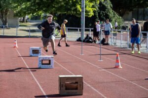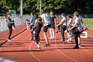 Zum Abschluss wurde eine Klassen-Challenge durchgeführt. Hier war beim Medizinballstoßen Kraft und Technik gefragt, während die Pendelstaffel die tolle Stimmung im Stadion noch einmal anheizte.