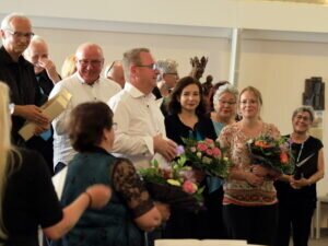 Zum Konzertabschluss dankte Eintracht Vorsitzender Jörg Haas mit Blumen und Präsenten der Künstlerschar und besonders seiner „Chorifeen-Chefin“ Margita Mohr für Ihre konstante Organisation und Motivation in der bereits 28 Monate dauernden „Coronazeit“. Denn es war gut, dass ihr Chor in dieser schwierigen Zeit immer im Trainingsmodus blieb. Egal ob digital, analog oder hybrid, denn nur so konnten sie wie auch die Harmonie aus Daubringen dieses großartige Konzert gestalten.
