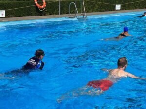 Die Kinder absolvierten 50 Meter Schwimmen, 2.5 Km Radfahren und 800 Meter Laufen zum Abschluß. Das schnellste Kind war nach 11.03 Minuten im Ziel. Für die Erwachsenen waren 200 Meter Schwimmen , 12 Km Radfahren und zum Abschluß noch 2.5 Km Laufen angesagt. Bei den Erwachsenen war die schnellste Zeit im Ziel angezeigt mit 35:04 Minuten.