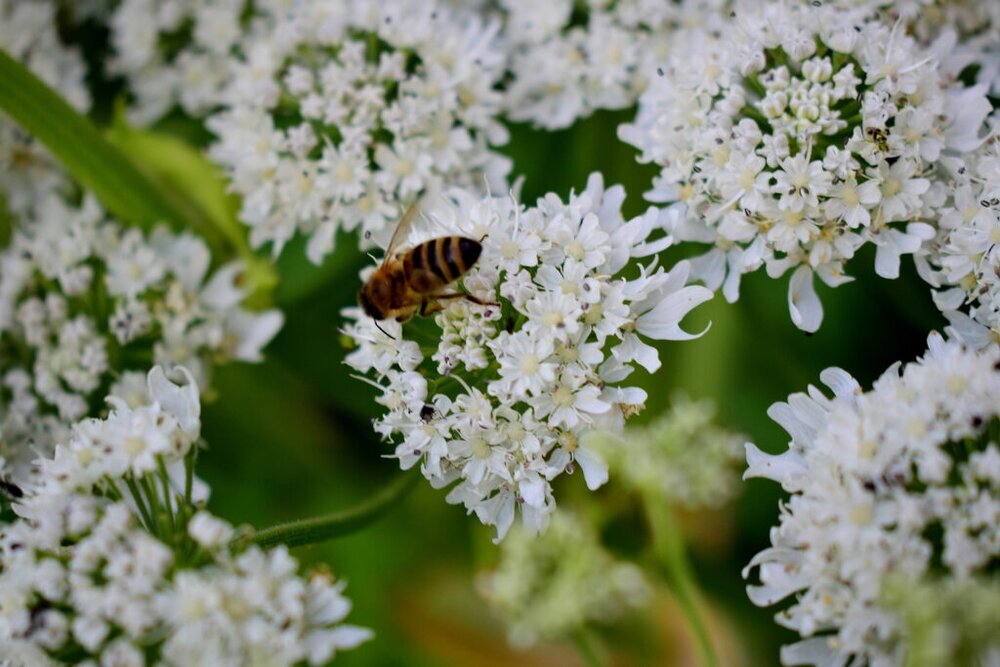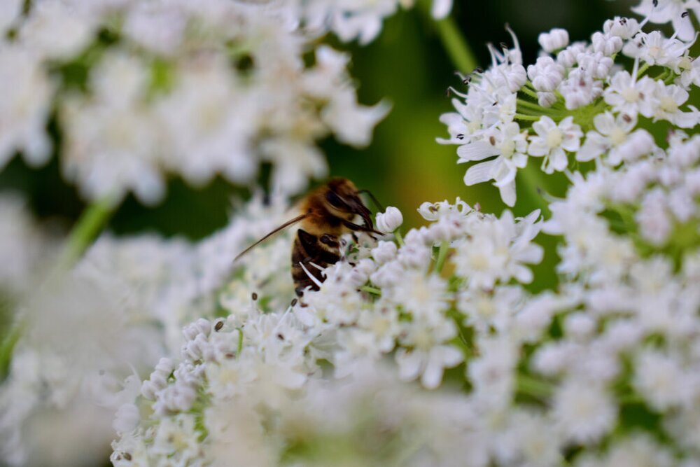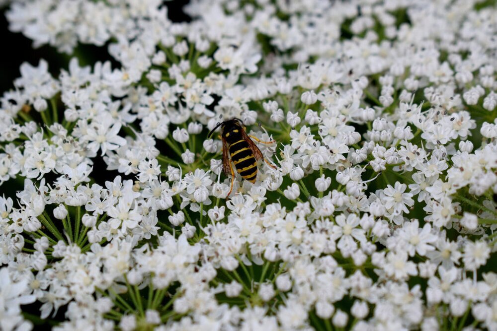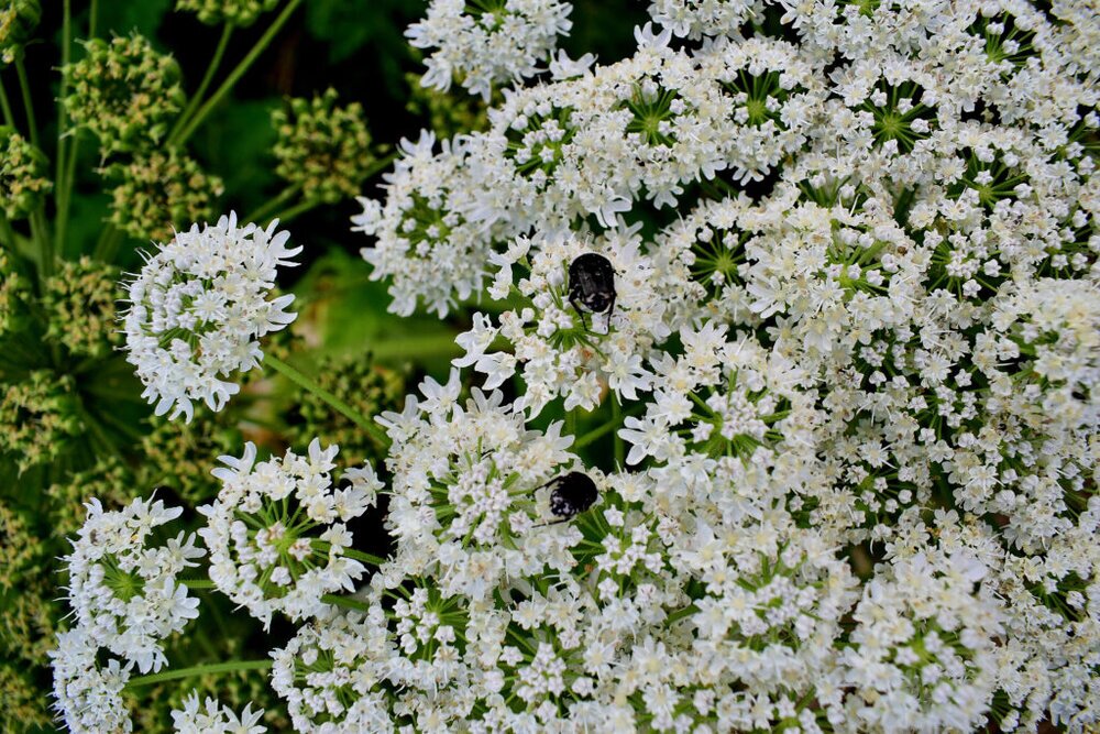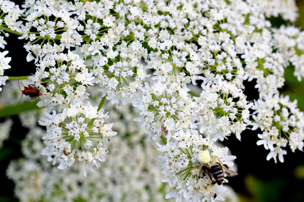 Diese nützlichen und wertvollen Insekten auf einer Herkules-Zentraldolde erahnen noch nicht was auf sie zu kommen könnte.