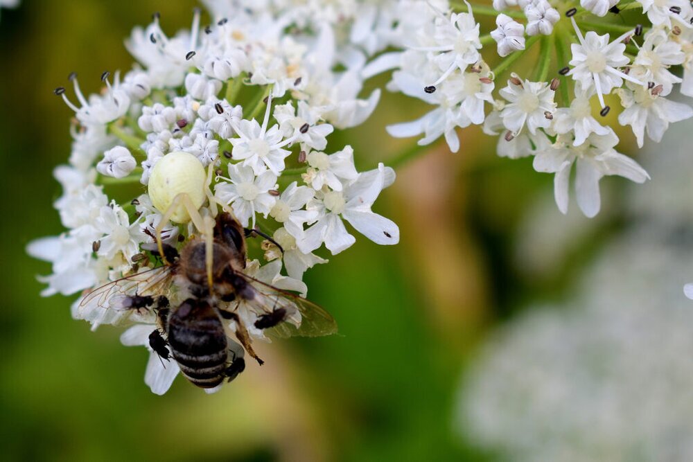 Den Beitrag Nicole Freemanns aus der … Wilden Ecke – Krabbenspinnen möchte ich gerne noch mal aufgreifen – und über die gleiche Spinnenart erzählen, die sich auf einer Herkulesstaude einen lohnenden Platz auf einer Blütendolde ausgesucht hatte.
