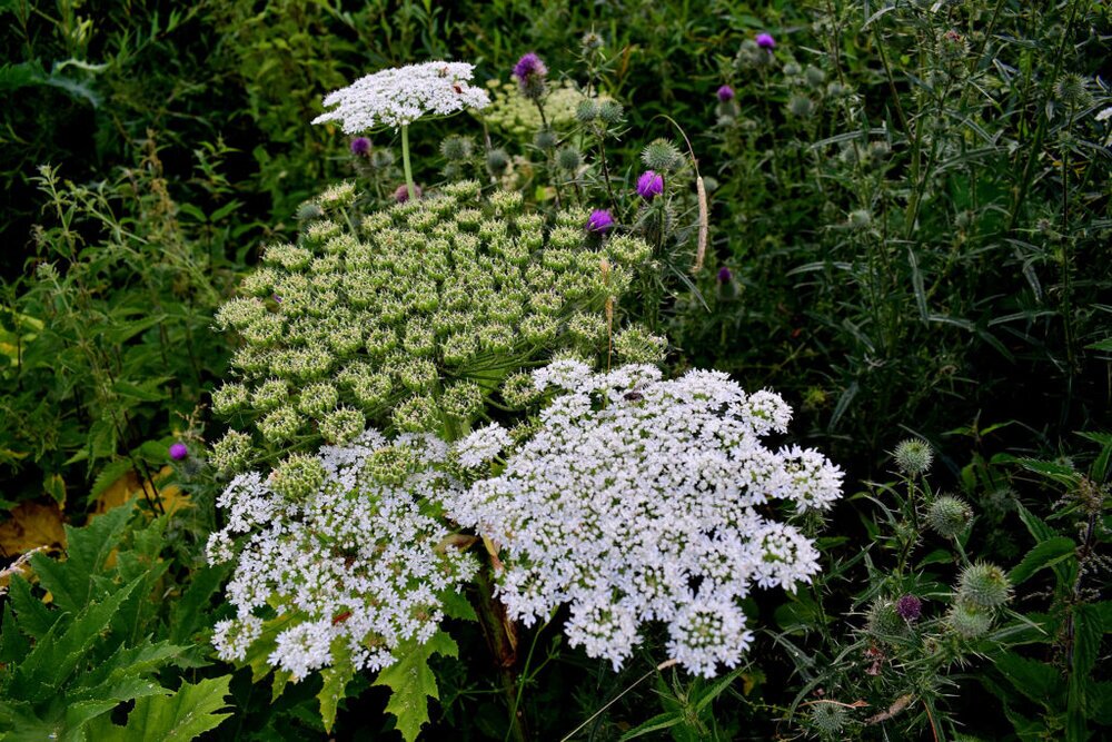 “Die Welt ist voller Wunder … .” Fange mit der Herkulesstaude an, die meine Blicke schon von weitem auf sich zog.