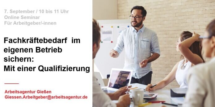 Welche Qualifizierungen finanziell unterstützt, ob auch eine Teilqualifizierung möglich ist und ob die Zeit der Kurzarbeit auch für eine Weiterbildung genutzt werden kann, erfahren Interessierte im Online-Vortrag am 7. September von 10 bis 11 Uhr. Unter dem Motto „Qualifizierung und Weiterbildung von Beschäftigten“ lädt der Arbeitgeberservice der Arbeitsagentur Gießen Arbeitgeber/innen und Beschäftigte, die Interesse an einer Qualifizierung im Betrieb haben, ein. Es sind ausdrücklich auch Interessierte eingeladen, die bislang noch in keinem Kontakt zur Arbeitsagentur stehen.