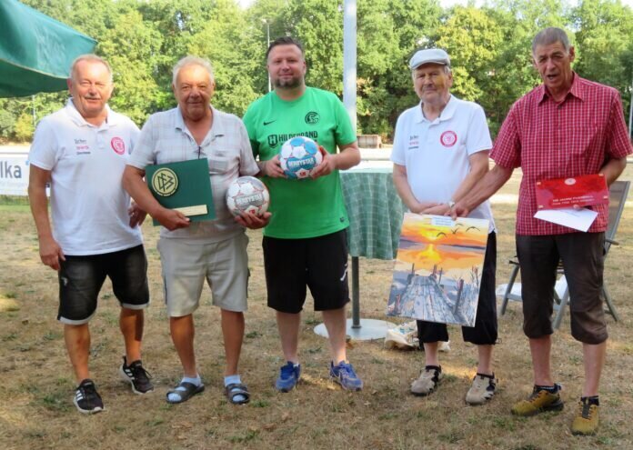 Stimmungsvoll leitete Kreisfußballwart Henry Mohr die Feierstunde ein und überreichte dann gemeinsam mit Horst Hilgardt die Jubiläumsgaben.  Vom DFB gab es die Ehrenplakette und einen Scheck über 500,- Euro. Vom HFV ebenfalls eine Ehrenplakette und einen Gutschein für eine Trainer C-Lizenz Ausbildung. Der Fußballkreis und Horst Hilgardt spendeten dem Verein noch jeweils einen Bundesligaspielball.
