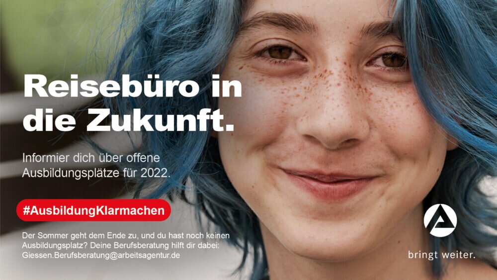 Ein Termin bei der Berufsberatung kann telefonisch unter 0800 – 4 5555 00 (kostenfrei) oder per e-Mail unter Giessen.Berufsberatung@arbeitsagentur.de vereinbart werden.