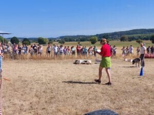 vermittelnden Hunde auf der großen Wiese gegenüber des Tierheims einem großen Publikum vorgestellt wurden.
